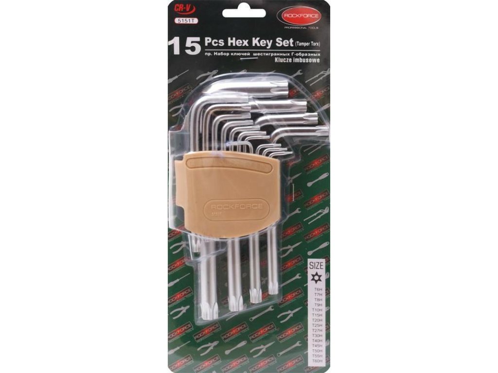 TORX KĽÚČE S OTVOROM T6-T60 15KS ROCKFORCE