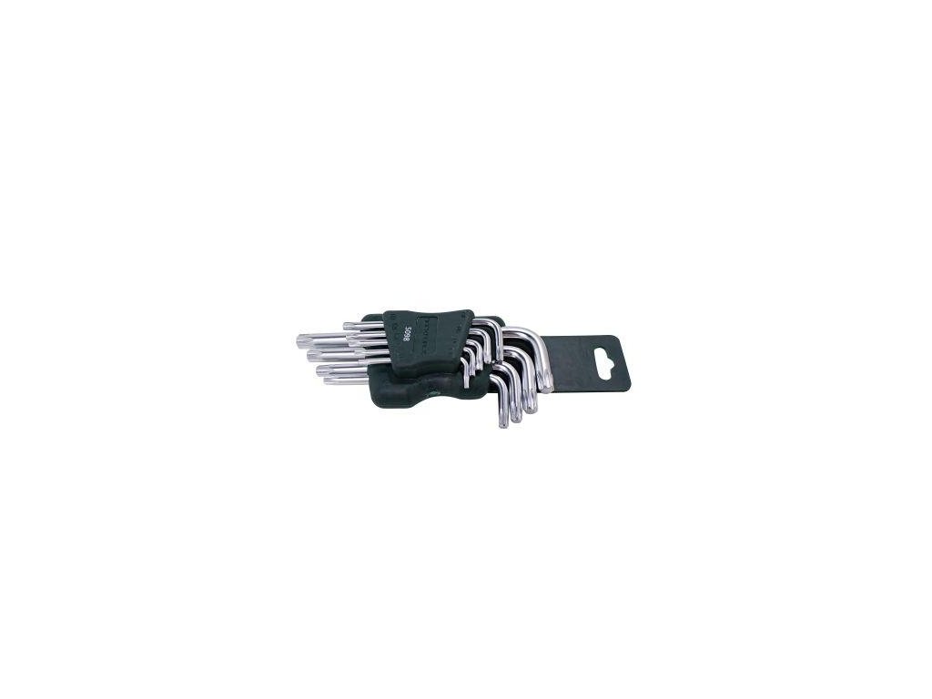 Súbor 9 kusov obojstranných kľúčov hriadeľových TORX, dlhých vo veľkostiach od T10 do T50.