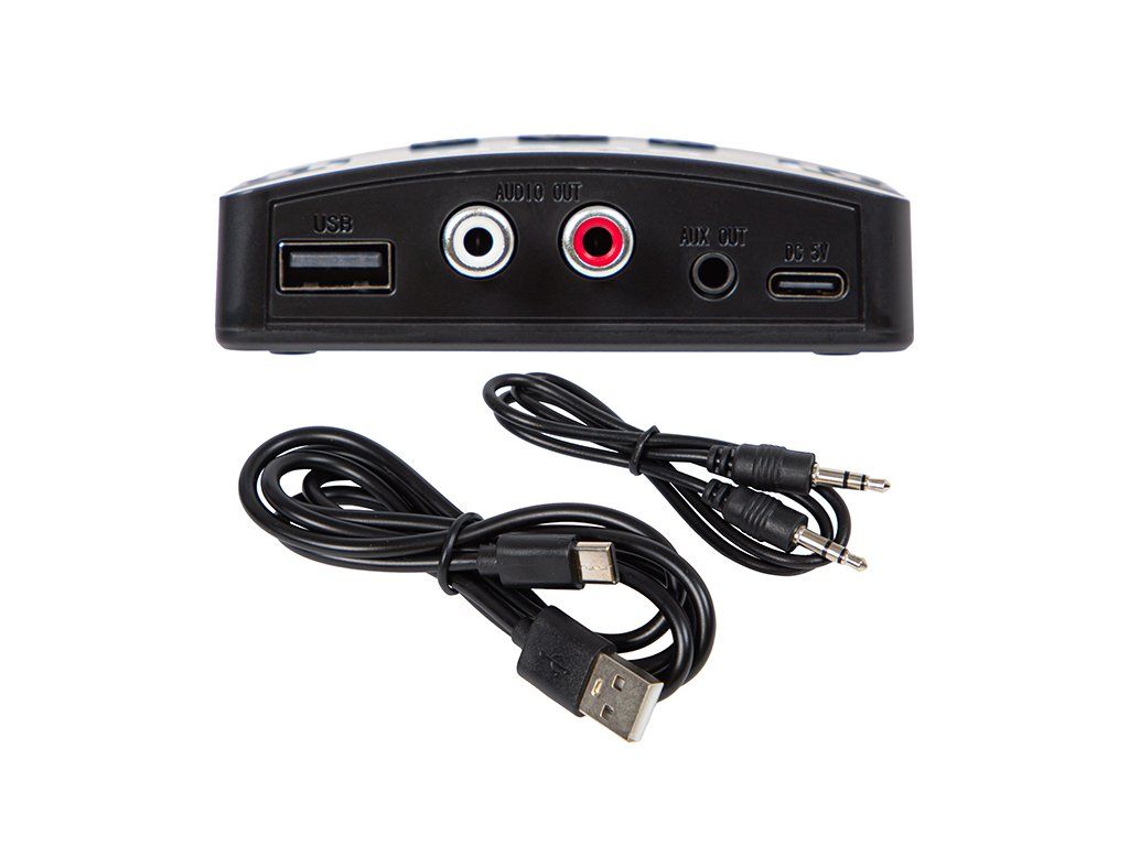 - určený pre zariadenia s Bluetooth, AUX alebo RCA pripojením