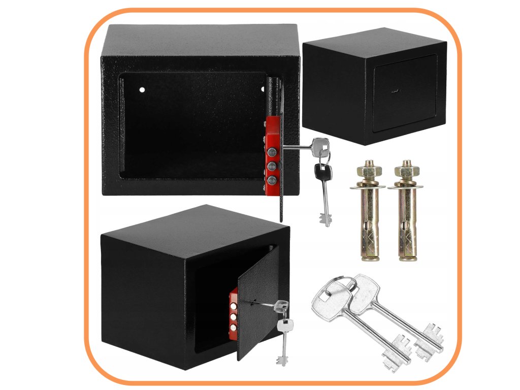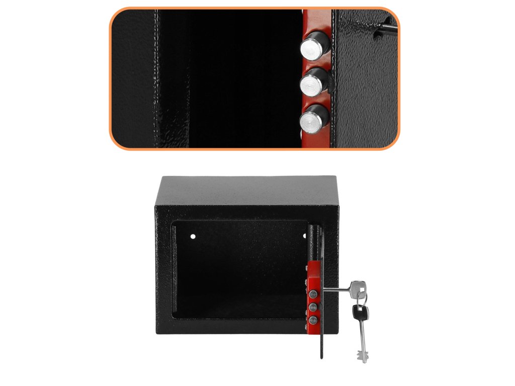 Dodatočne: možnosť montáže na steny a podlahu (hmoždinky sú súčasťou dodávky), plstená podložka, ktorá stíši interiér trezoru