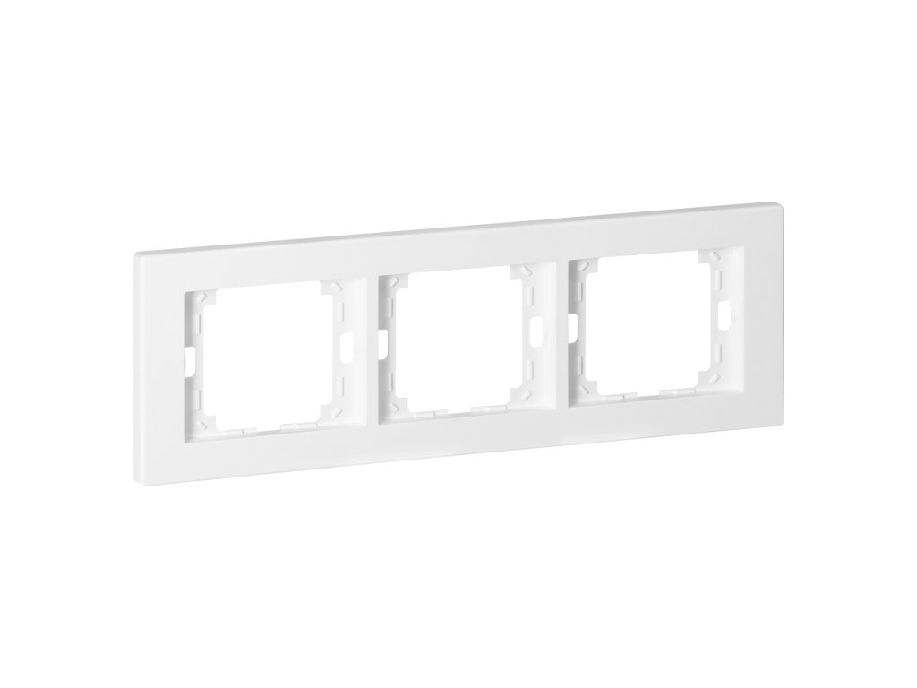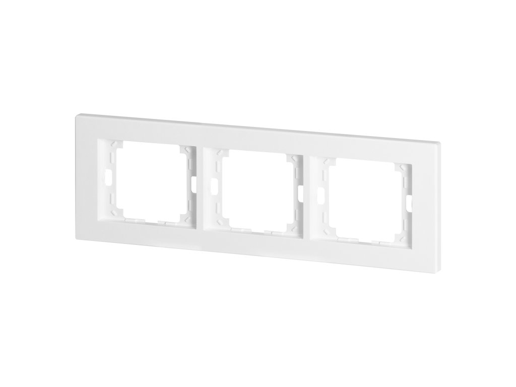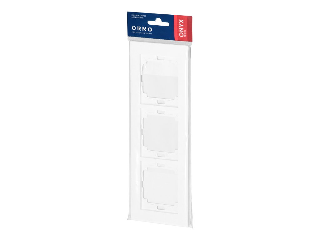 Modulárna séria so systémom rámových dosiek. Séria moderných vypínačov a zásuviek, ktoré harmonicky ladia s originálnymi dizajnérskymi interiérmi. Moderný rýchlospojovací mechanizmus vypínačov (káble sa pripájajú zatlačením priamo do tela) poskytuje bezpečnú a spoľahlivú inštaláciu a odstránenie káblov. Zásuvky sú vybavené tradičnými skrutkovými spojmi. Vnútorný dizajn svoriek zaručuje bezpečné pripojenie káblov od 0,75 mm? do 2,5 mm?. Silná a robustná montážna mriežka a špeciálne montážne prvky umožňujú stabilnú a spoľahlivú inštaláciu v skrinke.Trojitý rám pre sériu ONYX. Mal by byť používaný v interiéri (IP20).