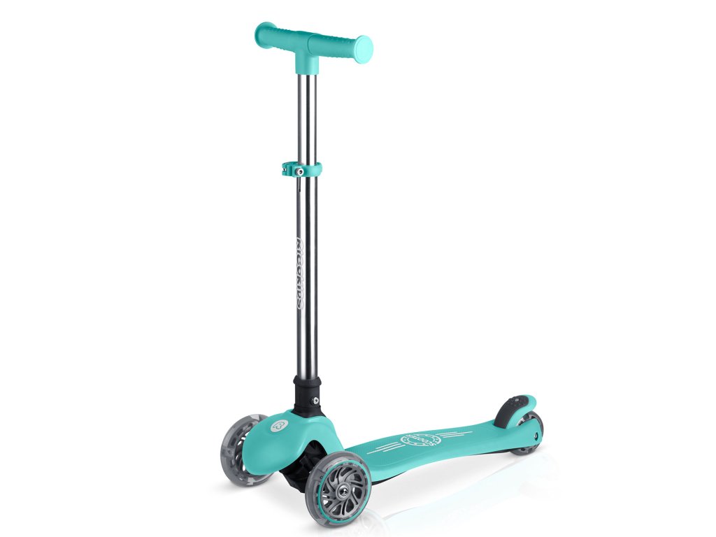 Trojkolesová kolobežka pre deti s balancom svietiaca v tme Ricokids Glow - tyrkysová
