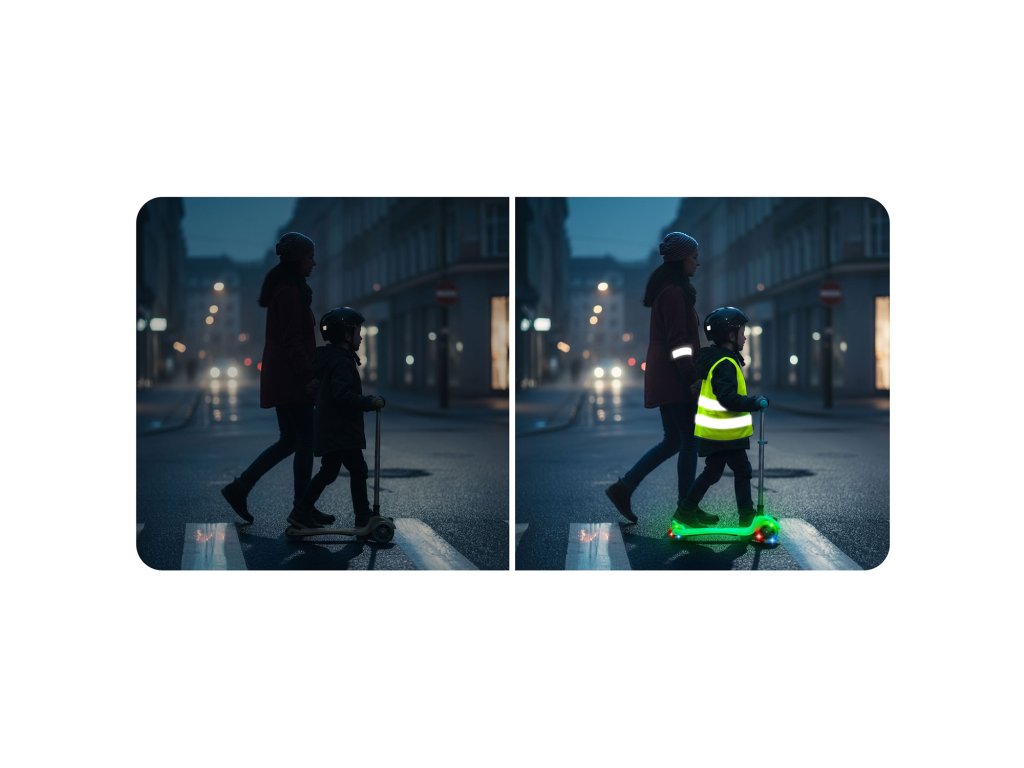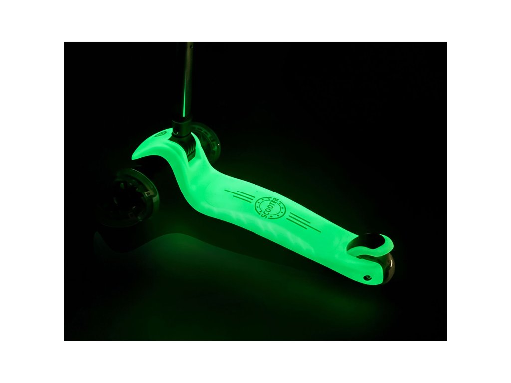 Plošina kolobežky vďaka fluorescenčným vlastnostiam vyžaruje svetlo po zotmení. Zlepšuje viditeľnosť pri slabom osvetlení a zvyšuje zábavu!