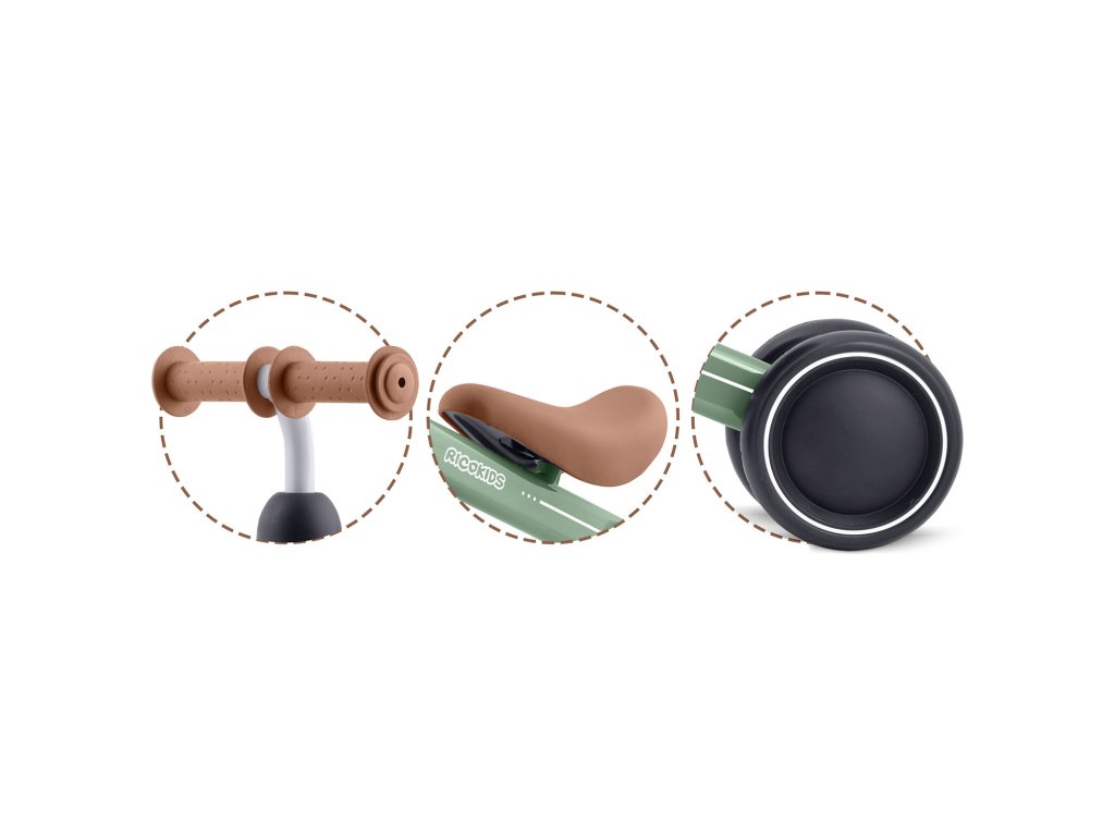 Ľahkosť a stabilita: vyberte bicykel vyrobený z ľahkého materiálu, aby ho dieťa mohlo ľahko zdvíhať a manévrovať. Bicykel by mal mať široké, stabilné kolesá, ktoré uľahčia udržiavanie rovnováhy.