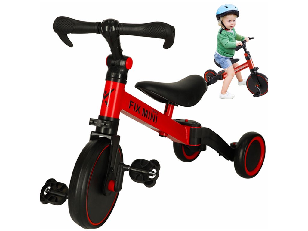 Trojkolka Fix Mini bežecká trojkolka 3v1 s pedálmi červená