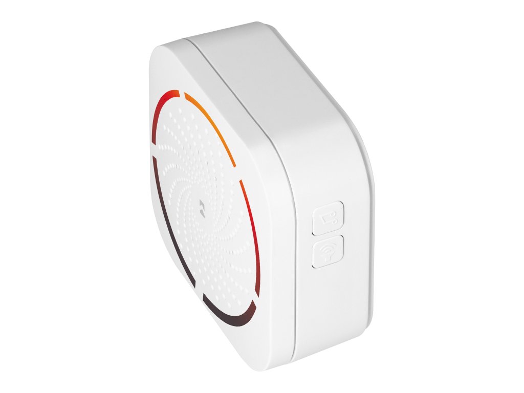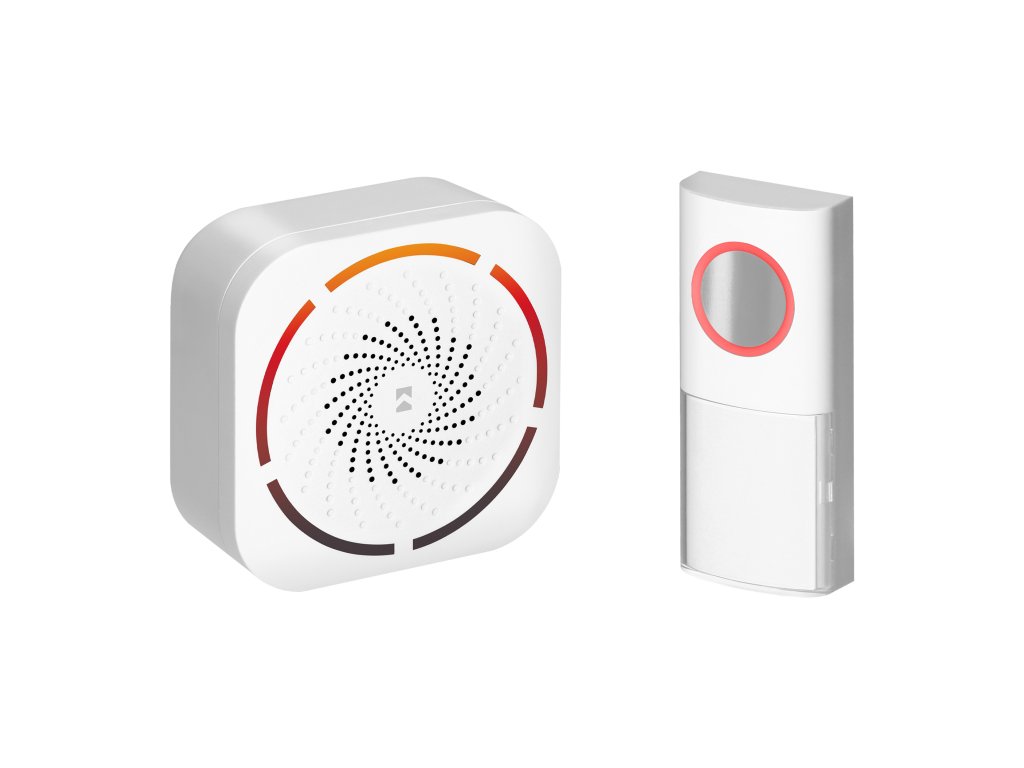 Zvonček je napájaný dvoma AA batériami (nie sú súčasťou dodávky). Stupeň ochrany IP20 je vhodný na použitie v suchých miestach. Vyrobené z vysokokvalitného plastu v bielej farbe. Rozmery sú 70x70x31 mm. Povrchová montáž.