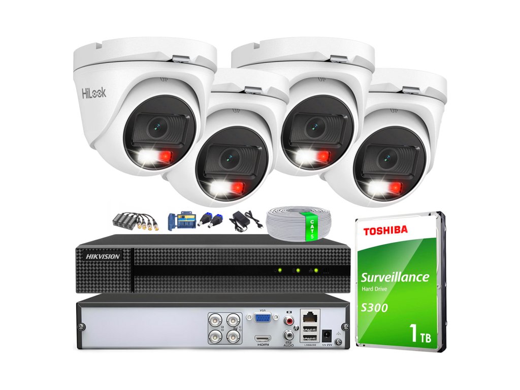 TurboHD monitorovací set, 4 vonkajšie kamery Hybrid Light 2Mpx, XVR 4ch rekordér - HiLook by Hikvision