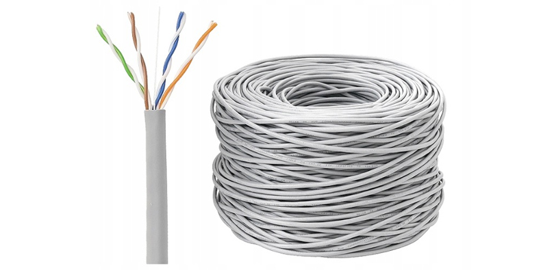 Kábel UTP v sade je vysokokvalitná počítačová skrutka kategórie 5E, so štyrmi páry asymetricky skrutkovaných drôtov