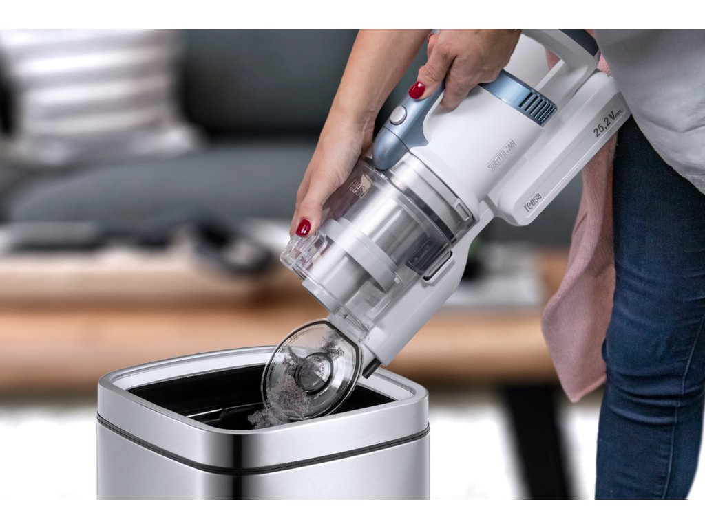 Vysávanie nie je jediná vec, ktorá je s týmto modelom jednoduchá. Sweeper 7000 je bezvreckový vysávač, ktorý sa mimoriadne rýchlo čistí. Ak chcete vybrať nádobu na prach, stačí stlačiť jedno tlačidlo a vyprázdniť ju. To je všetko! Je to také jednoduché, však?