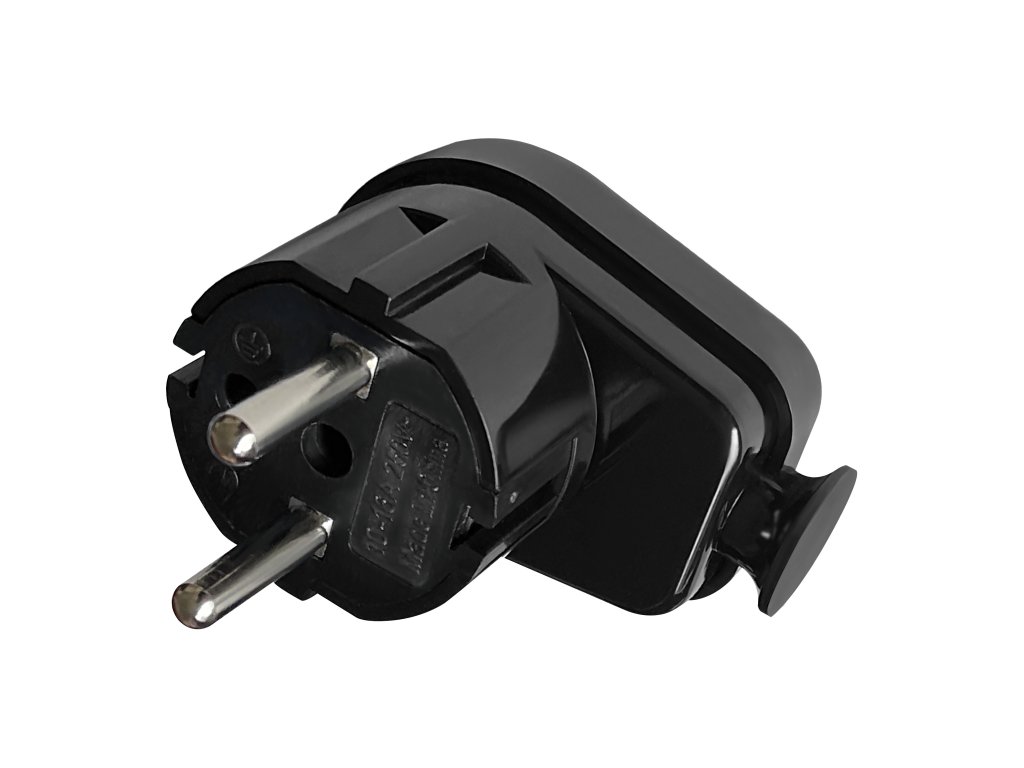 Zástrčka je vyrobená z vysoko kvalitného plastu (PC). Vhodná pre menovité napätie 230V a menovitý prúd 16A. Na použitie v suchých priestoroch (IP20). Čierna farba.