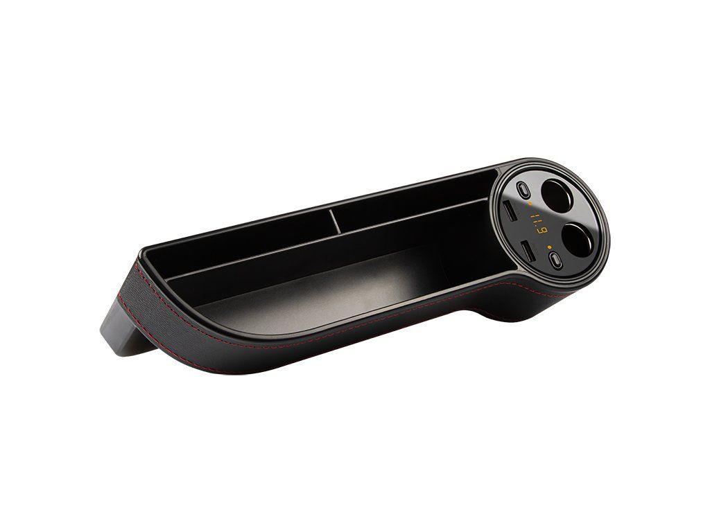 Praktický úložný box do auta 75-490- je navrhnutý tak, aby rozšíril odkladací priestor v interiéri vozidla a zároveň priniesol ďalšie funkcie pre pohodlnejšie cestovanie. Montuje sa na pravú stranu vodiča medzi sedadlo a stredový tunel, kde využíva voľný priestor bez obmedzenia komfortu pri šoférovaní. Čierne čalúnenie s červeným prešívaním pôsobí moderne a elegantne, takže box dobre zapadne do väčšiny interiérov áut.