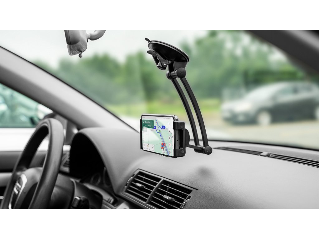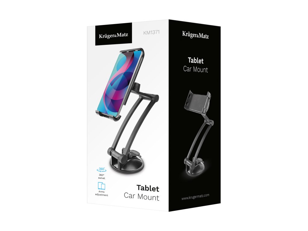 Držiak Kruger&Matz je vybavený pevným uchytením na prísavku, čo zabezpečuje bezpečné pripevnenie na sklo alebo iný hladký povrch. Vďaka tomu tablet zostáva stabilný aj počas jazdy po nerovných cestách.