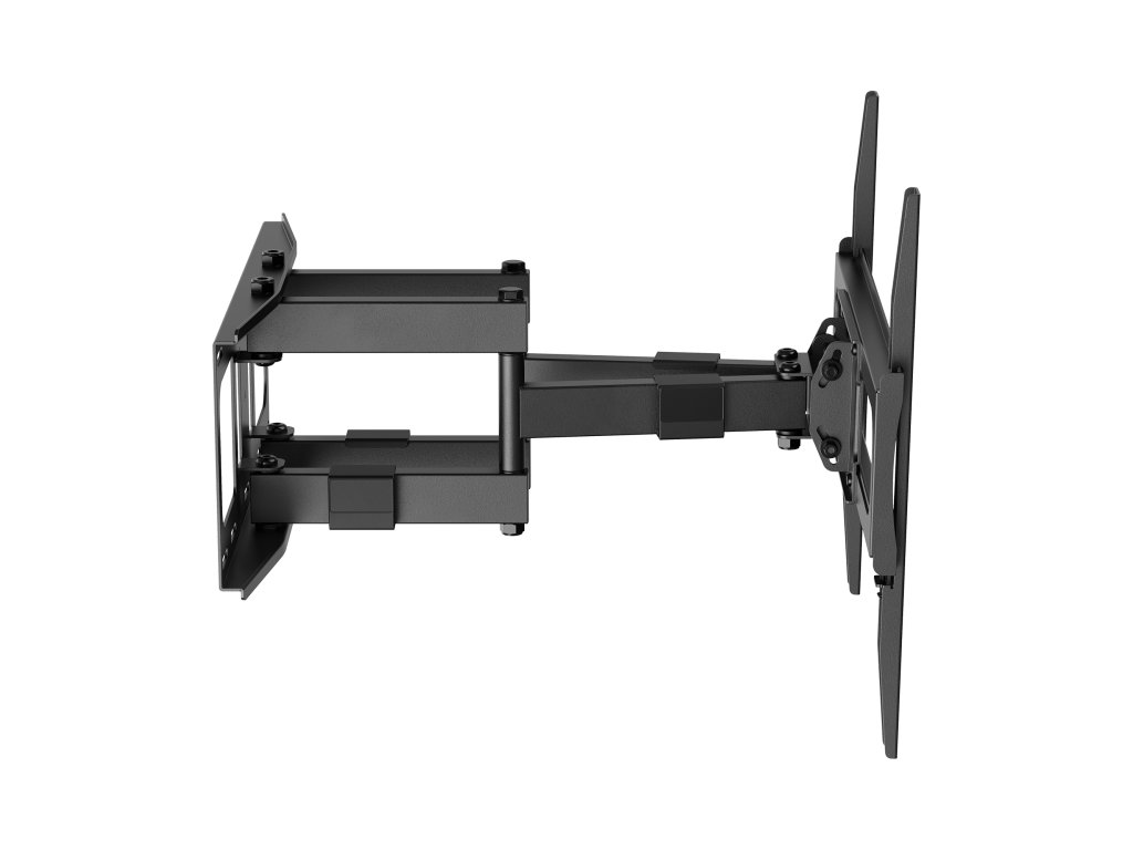 Držiak podporuje širokú škálu štandardov VESA a je prispôsobený pre televízory s maximálnou hmotnosťou do 60 kg, čo zaručuje stabilitu. Regulácia vzdialenosti od steny v rozsahu od 100 do 500 mm a vstavaný manažment káblov umožňujú estetické a funkčné prispôsobenie. V súprave sú priložené montážne skrutky, čo uľahčuje rýchlu a jednoduchú montáž.