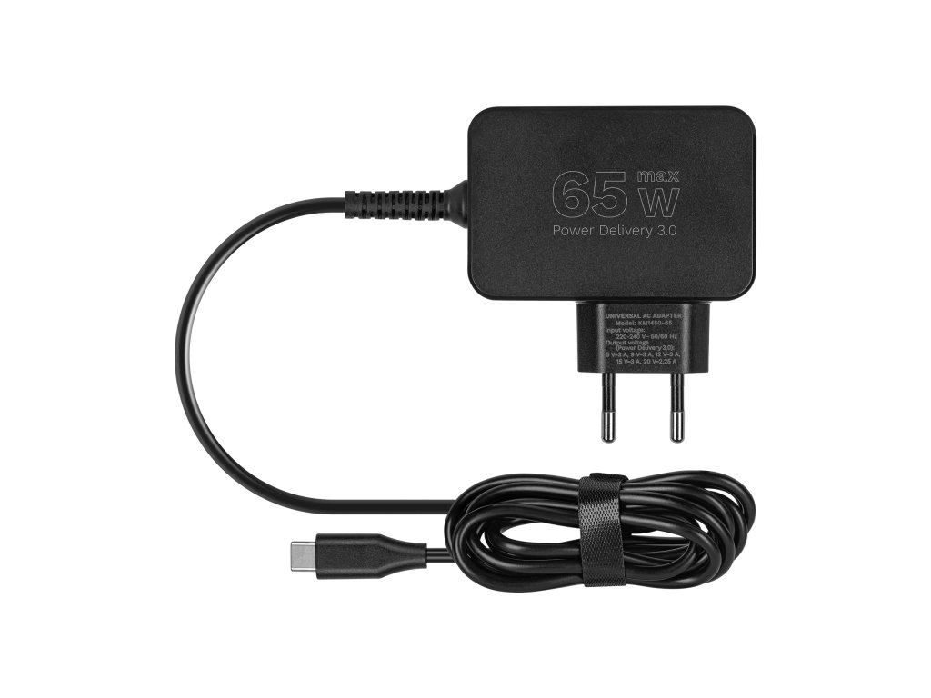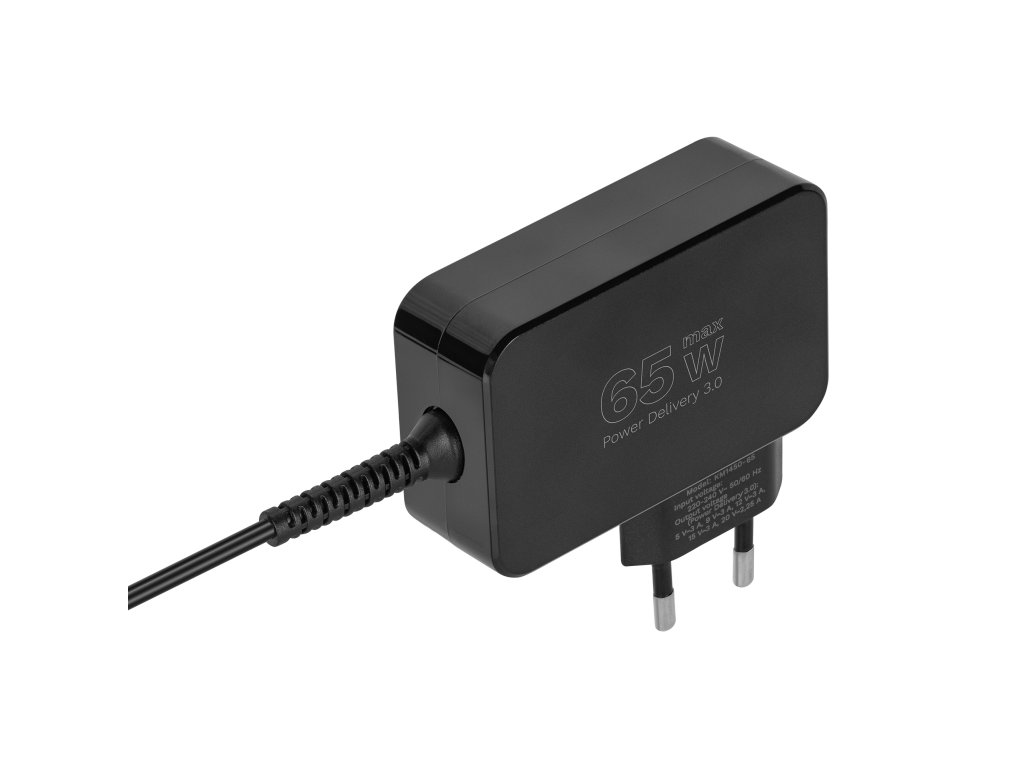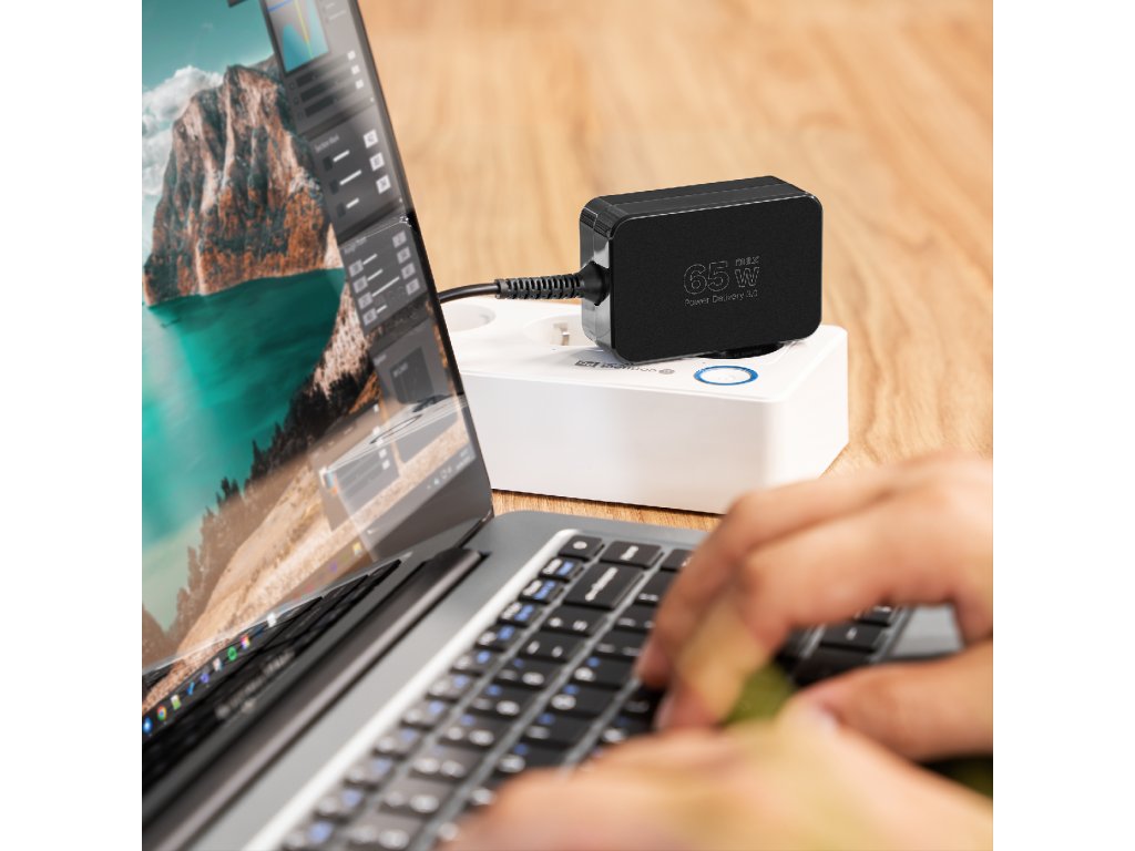 Napájací zdroj s výkonom 65 W zabezpečuje stabilné a rýchle nabíjanie laptopov a mobilných zariadení. Podporuje technológiu Power Delivery 3.0, ponúkajúcu rôzne úrovne napätia, vďaka čomu automaticky prispôsobuje parametre k pripojenému zariadeniu. Je to praktické a energeticky úsporné riešenie pre každodenné používanie.