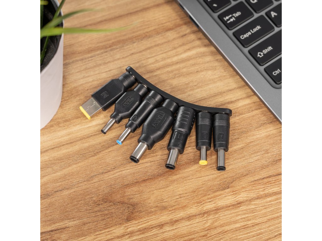 Na súprave nájdete až 7 vymeniteľných koncoviek kompatibilných s populárnymi značkami ako Dell, HP, Lenovo, Sony či Samsung. Vďaka tomu jeden napájací adaptér postačí na obsluhu viacerých notebookov doma alebo v firme. Je to ideálne riešenie pre osoby používajúce rôzne zariadenia alebo hľadajúce náhradný, univerzálny adaptér.