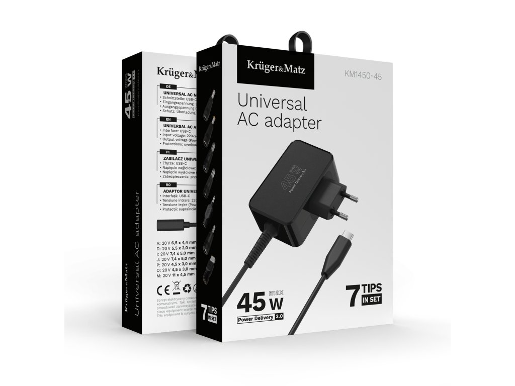 Univerzálny napájací adaptér Kruger&Matz 45W s funkciou Power Delivery