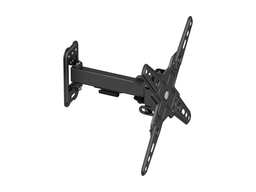 Držiak pasuje na širokú škálu LCD/LED televízorov a zakrivených obrazoviek s uhlopriečkou od 13” do 43” a maximálnym zaťažením 20 kg. Podporuje najpopulárnejšie štandardy VESA, čo zabezpečuje ľahkú montáž väčšiny modelov. Zabudovaný systém správy káblov pomáha skryť vodiče, takže celá inštalácia vyzerá esteticky a úhľadne a priestor okolo televízora zostáva uprataný.
