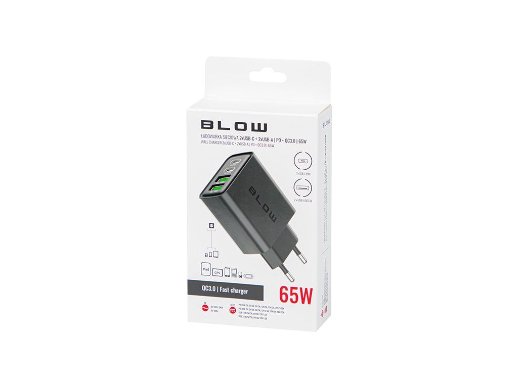 USB-C nabíjačka 65W 76-023- je praktická rýchlonabíjačka na každodenné používanie doma, v kancelárii aj na cestách. Ponúka vysoký nabíjací výkon, tri výstupy a podporu moderných technológií Quick Charge a Power Delivery, vďaka čomu zvládne pohodlne nabiť viac zariadení naraz.