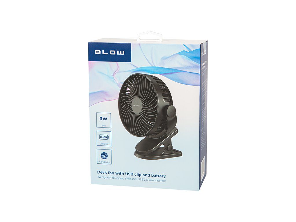 Produkt je dodávaný ako stolový ventilátor s klipom a USB v čiernom prevedení. Pred použitím stačí pripojiť k vhodnému USB zdroju napájania. Ventilátor je určený na osobné osvieženie v bezprostrednej blízkosti používateľa.