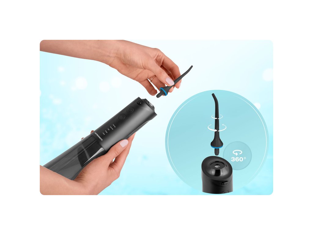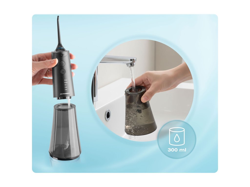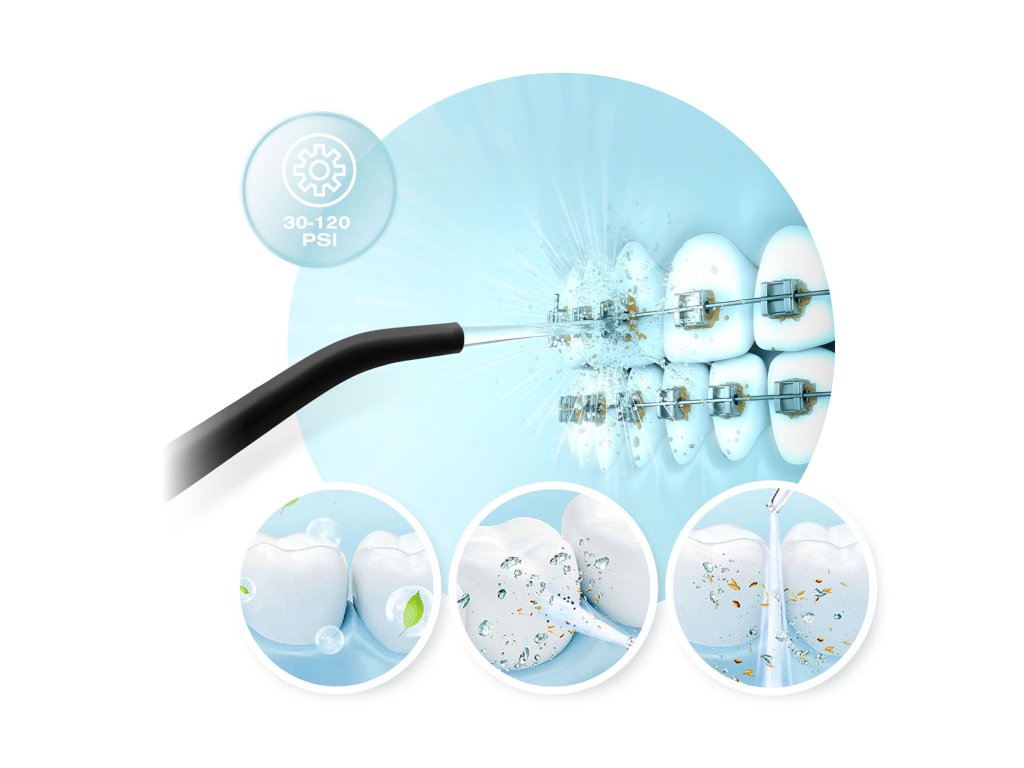 - Dlhšia práca bez prerušenia: väčšia nádrž umožňuje dlhšie zavlažovanie bez prestávok na doplnenie vody, čo je výhodné najmä pre ľudí s ortodontickými strojčekmi alebo mostíkmi.