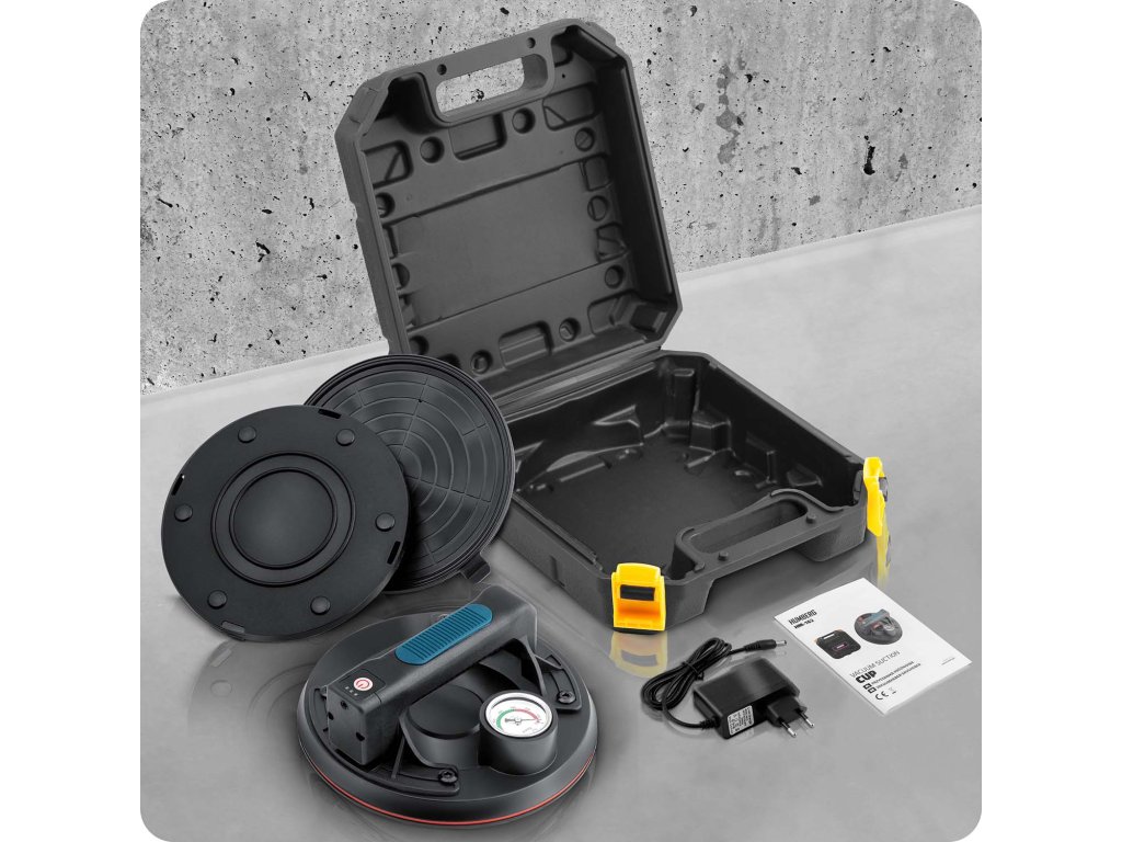 Odolná prísavka so silou zdvihnutia do 200 kg, v praktickom prepravnom kufríku.