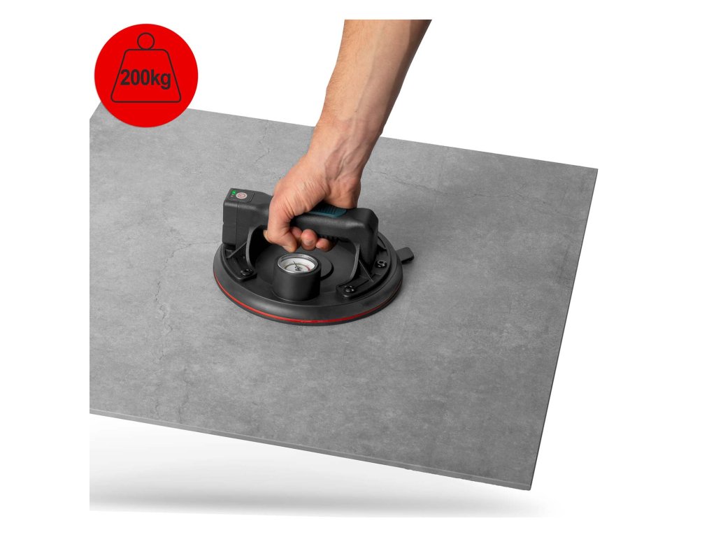 Profesionálna prísavka so silou zdvihnutia do 200 kg, napájaná batériou lítiovou 2400 mAh. Rýchle nabíjanie (len 2 hodiny), až do 8 hodín práce na jedno nabitie. Kompaktná, ideálna na precízne montážne a prepravné úlohy.