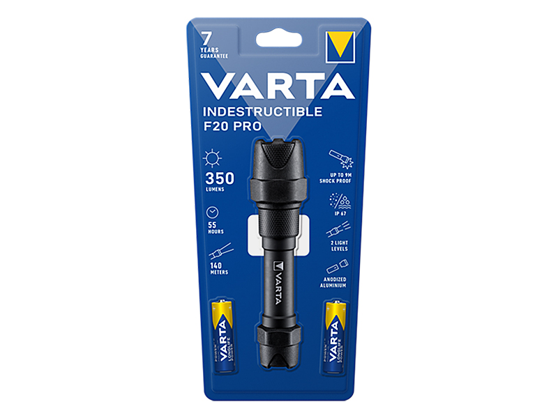 Varta LED baterka F20 PRO z radu INDESTRUCTIBLE je spoľahlivé ručné svietidlo navrhnuté pre náročné podmienky. Vyniká vysokou odolnosťou voči nárazom, prachu aj vode, takže je vhodná do dielne, na prácu v teréne, na turistiku aj pre domáce použitie. Vďaka výkonnej LED technológii poskytuje jasné a dobre smerované svetlo s výborným dosahom.