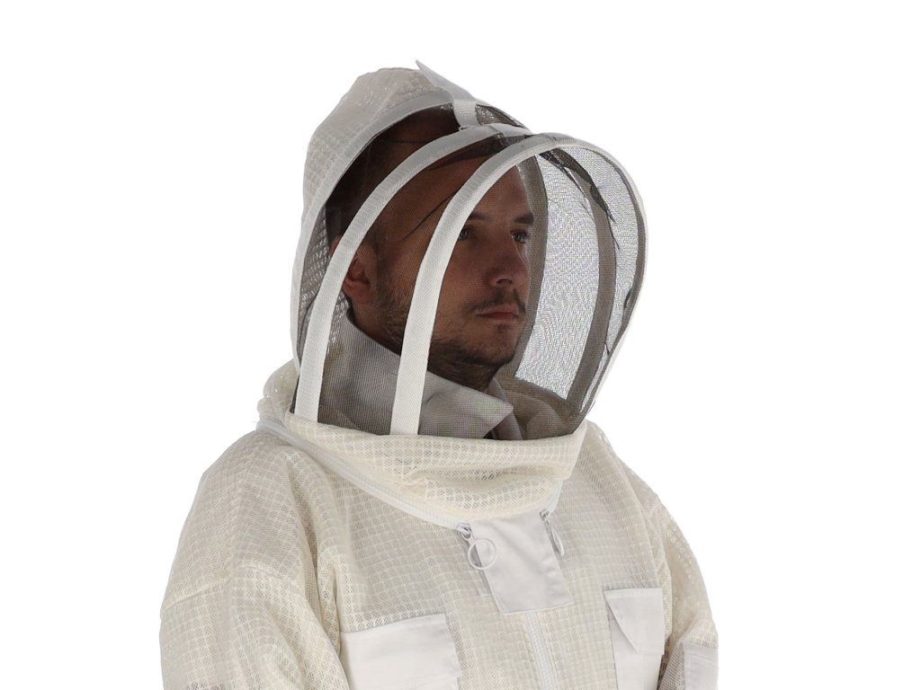 Ventilovaná včelárska mikina na zips, s odopínacím klobúkom, je ideálnou voľbou pre včelárov pracujúcich počas horúcich dní. Vďaka 3 vrstvovému ventilovanému materiálu sa užívateľ cíti pohodlne a bezpečne počas práce v úľoch. Mikina je na zips a klobúk možno ľahko odopnúť. Navyše, mikina má manžety na rukávoch a v páse, čo zaručuje lepšie prispôsobenie a ochranu. Šesť funkčných vreciek umožňuje uloženie potrebného náradia počas práce.