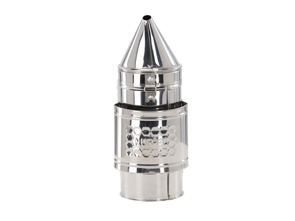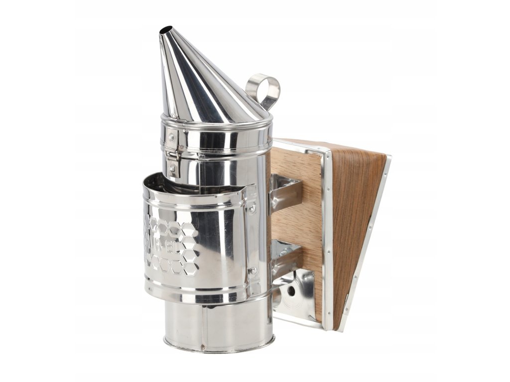 Dymkáč vyrobený z vysoko kvalitnej nerezovej ocele, čo zaručuje jeho trvanlivosť na mnoho sezón. Tento materiál poskytuje odolnosť voči poškodeniu a korózii, a tiež zabezpečuje, že produkt si dlho zachováva svoje vlastnosti. Široká základňa dymkáča eliminuje problém prevrátenia, čo zvyšuje komfort používania. Je to nevyhnutnosť pre každého včelára, ktorá umožňuje upokojiť včely počas prác v úli, zabezpečujúc bezpečné a účinné riadenie včiel.