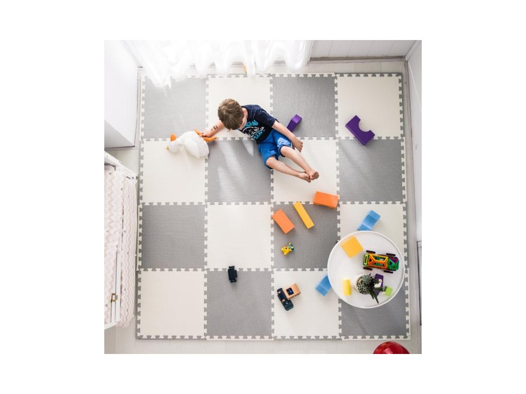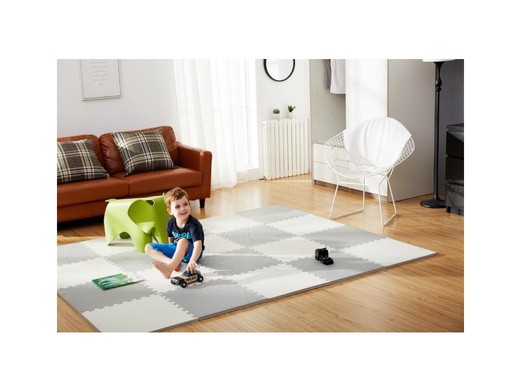 Puzzle sa dajú skladať v ľubovoľnej konfigurácii. To záleží na vás, či ich usporiadate do šachovnice, alebo spojíte tak, že polovica podložky bude biela a polovica sivá.