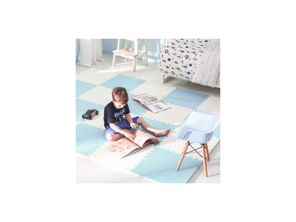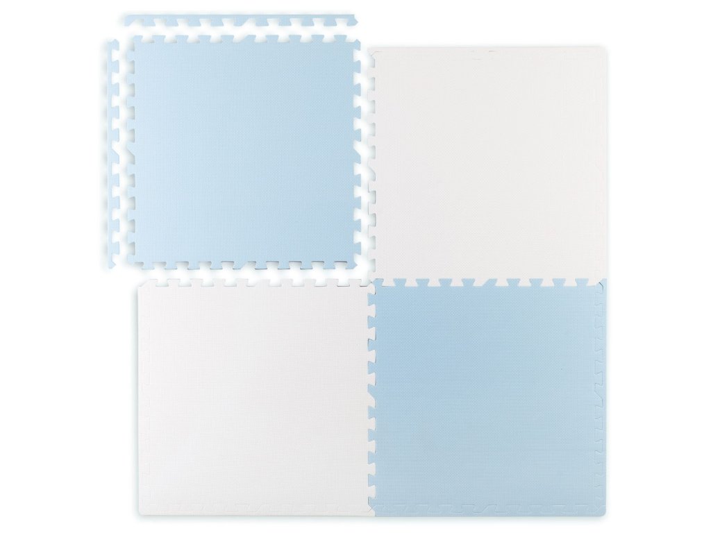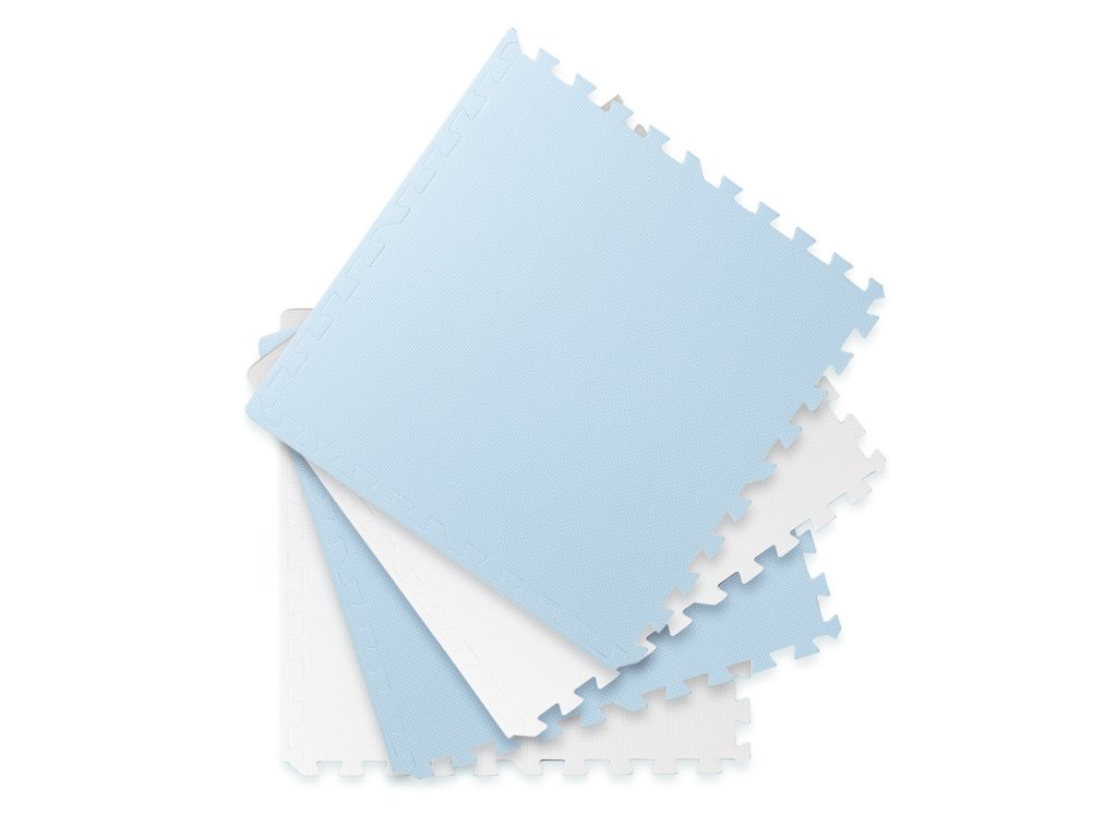 Puzzle možno spájať v ľubovoľnej konfigurácii. Je na vás, či ich zložíte do šachovnice alebo zoskupíte tak, že polovica podložky bude biela a druhá polovica modrá.