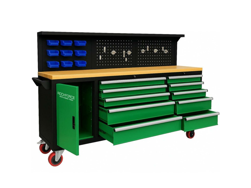 VEĽKÝ DIELENSKÝ STÔL S DREVENOU DOSKOU, SKRINKOU A ZÁSUVKAMI!!!