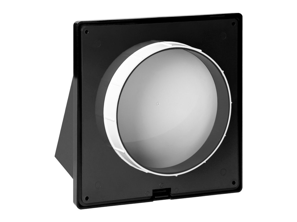 Mriežka určená na použitie mimo budov ako zakončenie mechanickej ventilácie. Tvar krytu chráni pred prenikaním vody zvonku. Spätná klapka chráni pred nepriaznivými spätnými prúdmi a sieťka blokuje prístup vtákov a zabraňuje vniknutiu odpadu do ventilácie.Materiál mriežky: ABS.