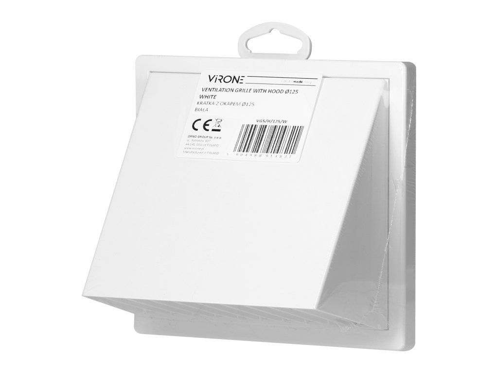 Mriežka určená na použitie mimo budov ako zakončenie mechanického vetrania. Tvar ochranného krytu chráni pred prenikaním vody zvonka. Spätná klapka chráni pred nepriaznivým spätným ťahom a sieťka blokuje prístup vtákov a zabraňuje padaniu odpadkov do vetrania.Materiál mriežky: ABS.