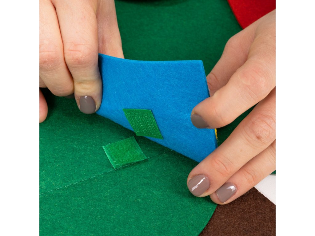 - Súprava obsahuje plstené ozdoby, ktoré sa dajú pripevniť pomocou suchého zipsu.