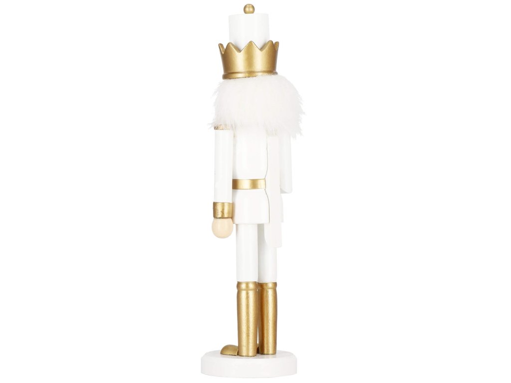 - Prvky konštrukcie: biela čiapka so zlatou korunou, bielo-zlatý odev, zlaté topánky, tvár s očami a fúzmi, vyčnievajúci nos, šedé vlasy a brada, otvor na orech v ústach otváraný zdvihnutím páky zozadu, v ruke lízanka