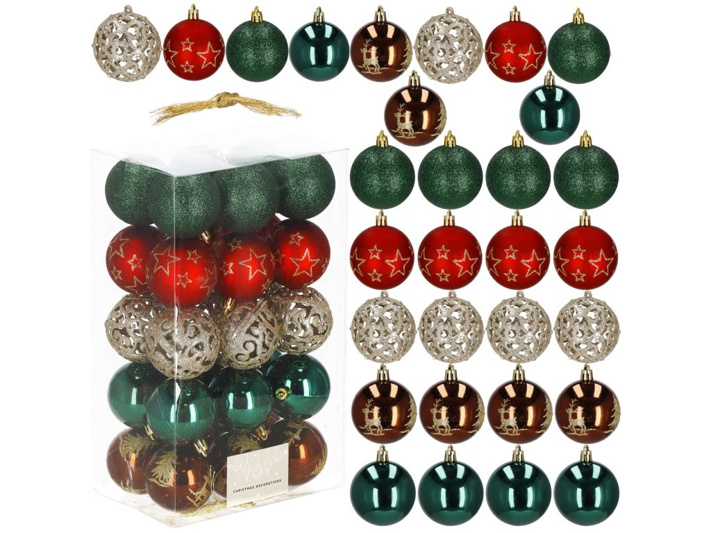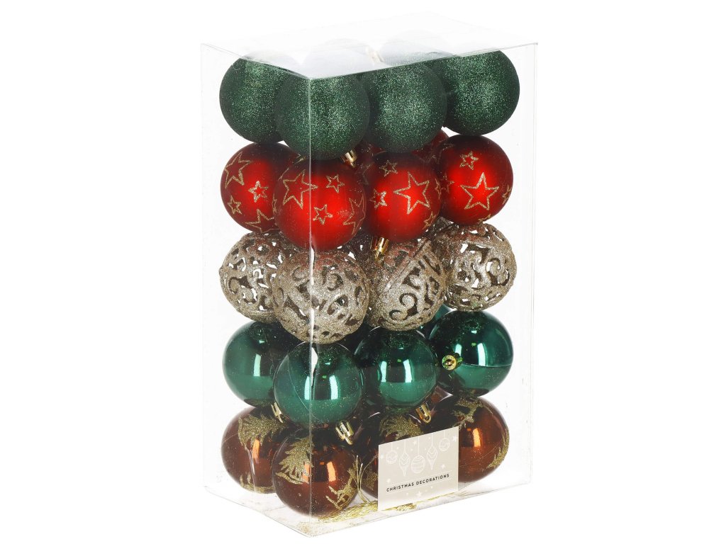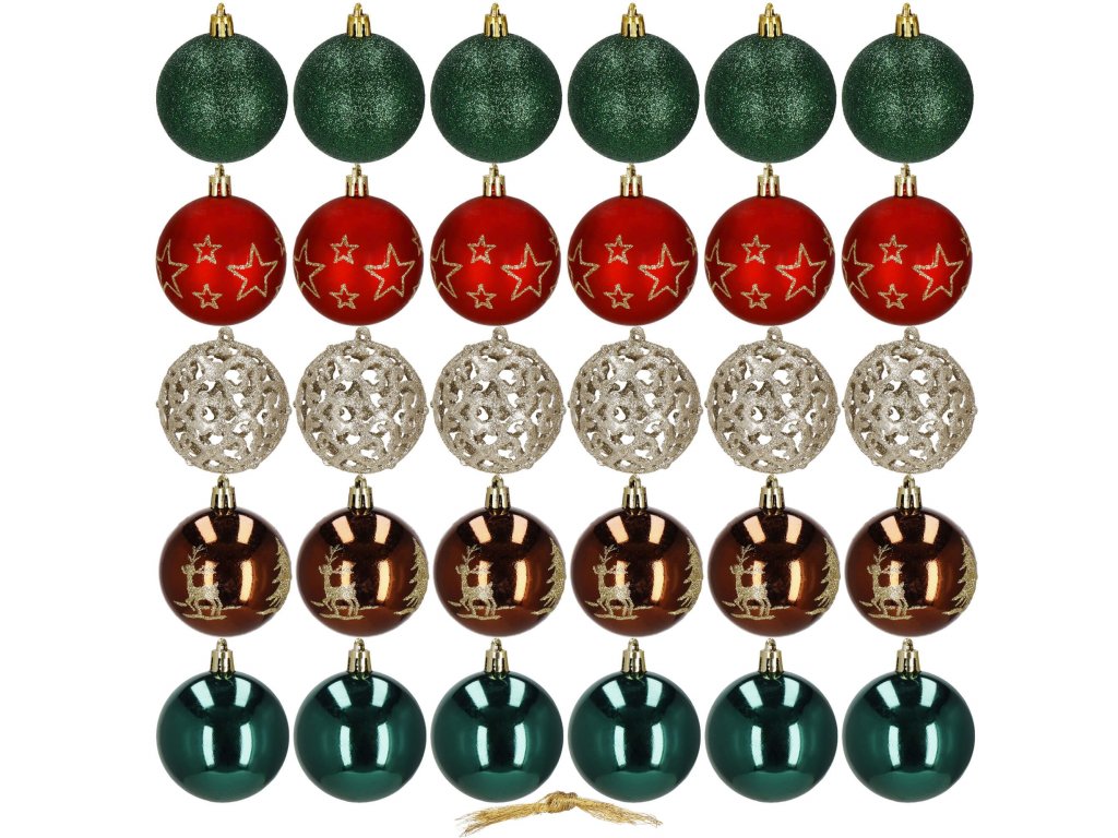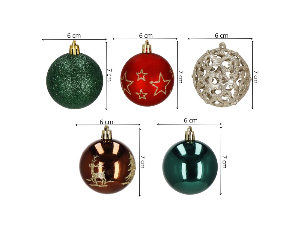 - 6x matné gule - červené + zlaté trblietavé hviezdičky - 6 cm
