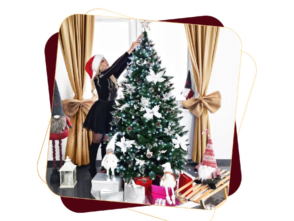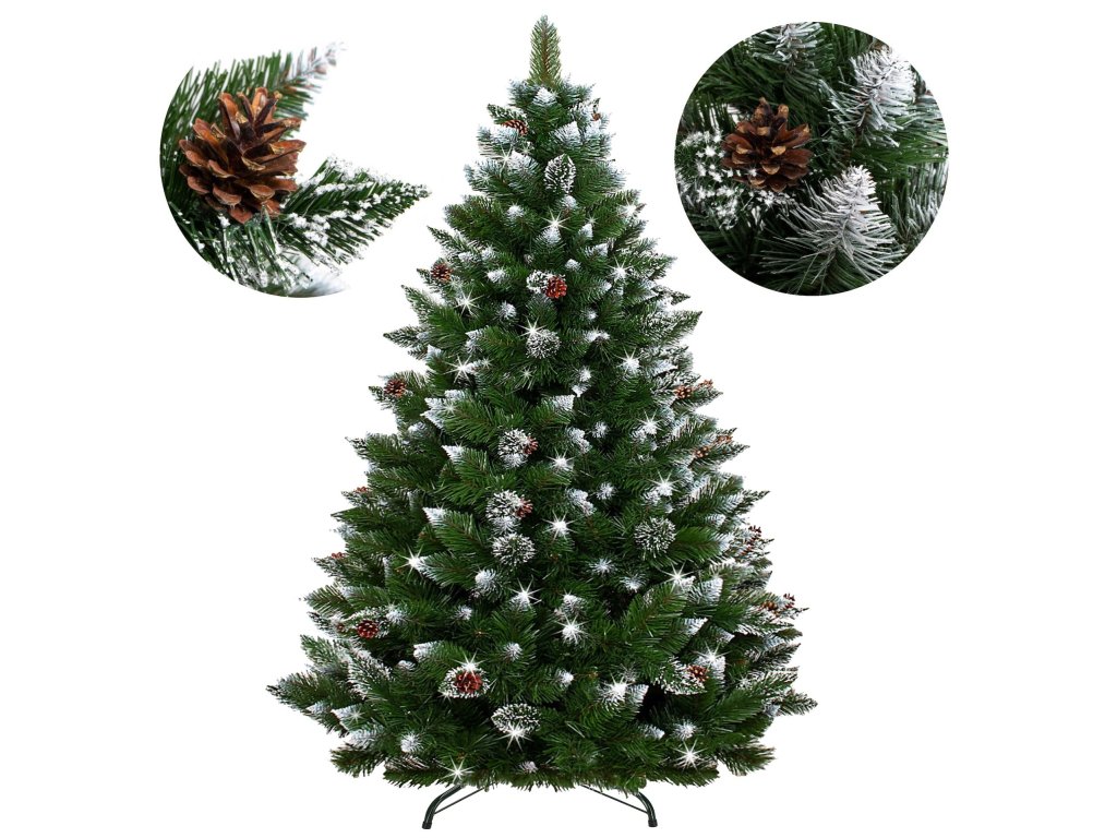 - Farba ihličia: zelená + konce konárikov s dvomi druhmi polevy - biela a strieborno-glitrová a prírodné šišky