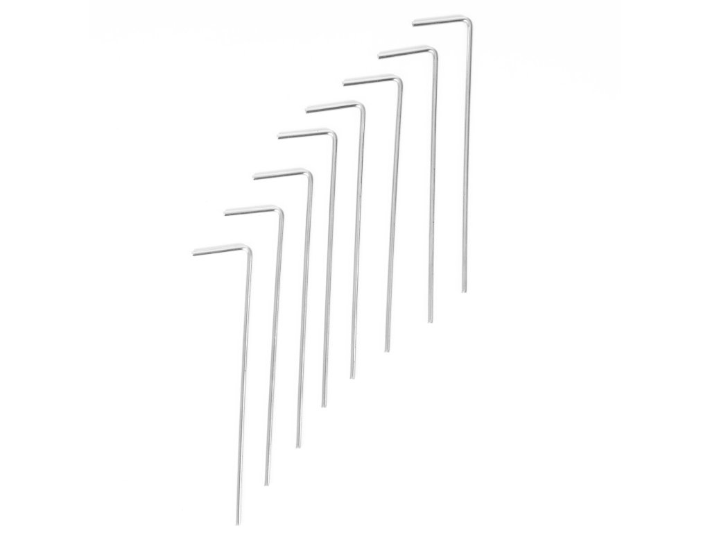 - “L” kolíky sa používajú na upevnenie LED reťazí k zemi a napnutie