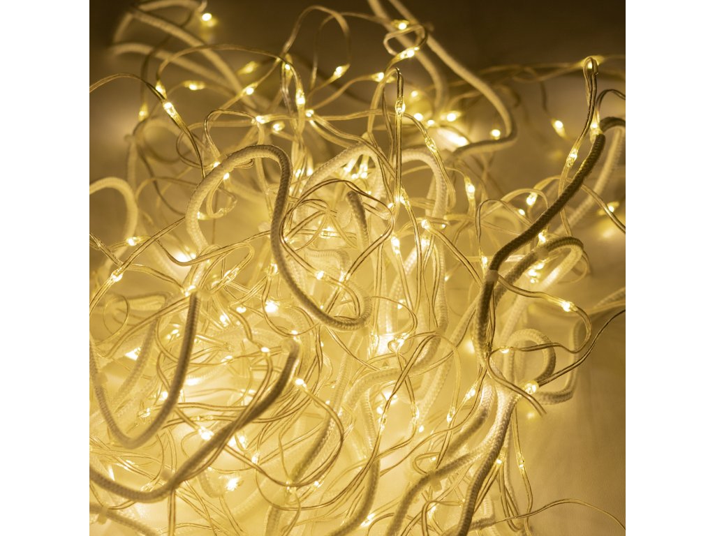 - LED drôty sú pripevnené na šnúrkach pomocou plastových viazacích pásikov