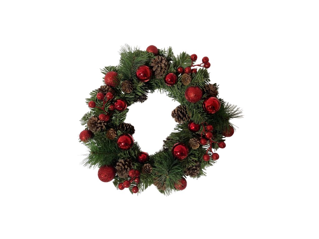 VIANOČNÝ VENIEC 36 CM S ČERVENÝMI ŠIŠKAMI *4251