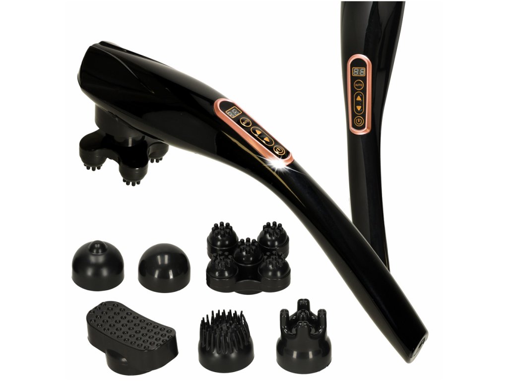Dlhá rukoväť zabezpečuje pevné uchopenie prístroja, takže ruka sa tak rýchlo neunaví ani počas dlhej masáže. Okrem toho dĺžka rukoväte umožňuje, aby ste si sami masírovali ťažko dostupné oblasti, ako je napríklad chrbát.