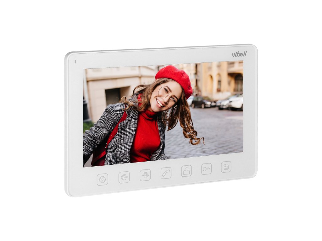 Príklad súpravy VIBELL - súprava videotelefónu NOVEO, ktorá nevyžaduje žiadny unifón. Obsahuje viacfarebný plochý 7" LCD monitor a veľmi odolnú širokouhlú videokameru. Má užívateľsky prívetivú ponuku OSD, ktorá sa používa na okamžité nastavenie parametrov monitora. Súprava umožňuje funkciu ovládania brány a otváranie výstupu zámku dverí priamo z panela videokamery. Dostupné farby: čierna a biela.Technická špecifikácia: