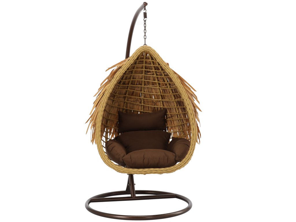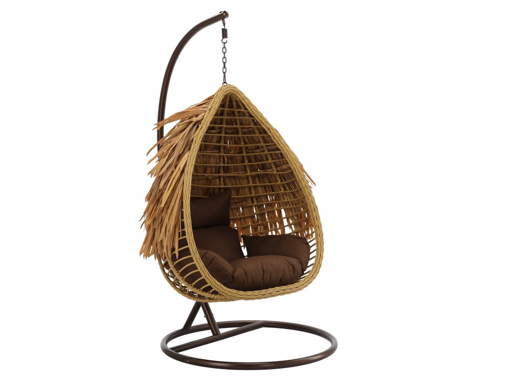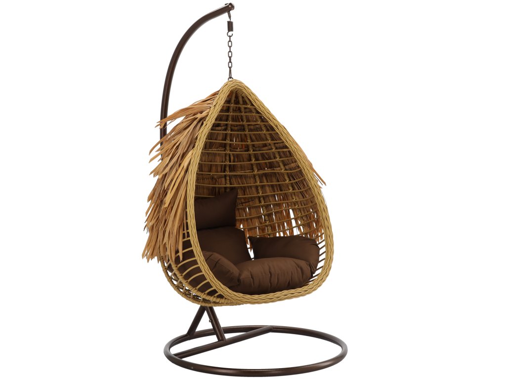 VISIACE KRESLO AZTEC - PRÍRODNÝ, HNEDÝ VANKÚŠ, HNEDÝ RÁM *0077