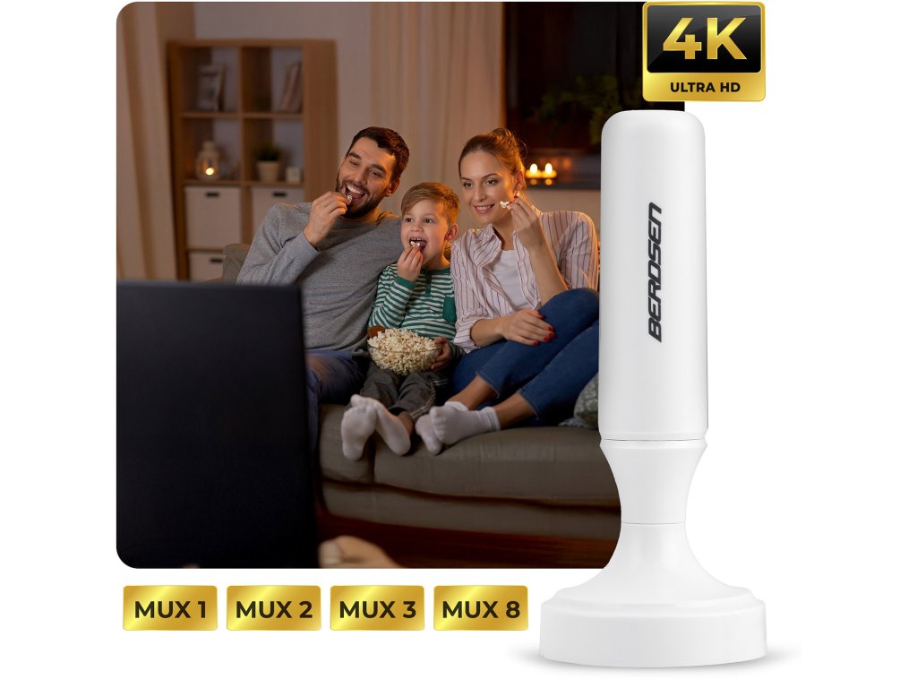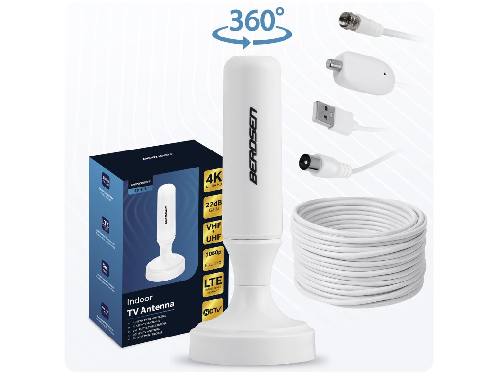 Vnútorná anténa 360 stupňov TV ultra HD 4K Berdsen BD-956 biela