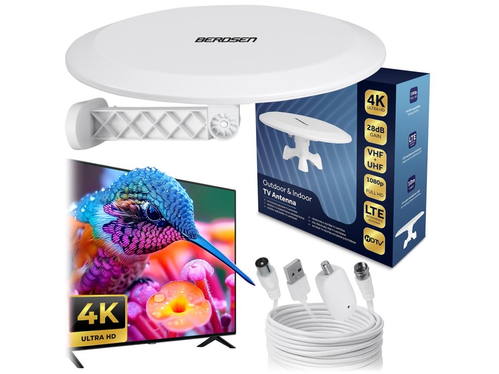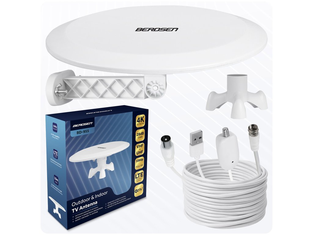 Vnútorná vonkajšia anténa TV ultra HD 4K Berdsen BD-955 biela