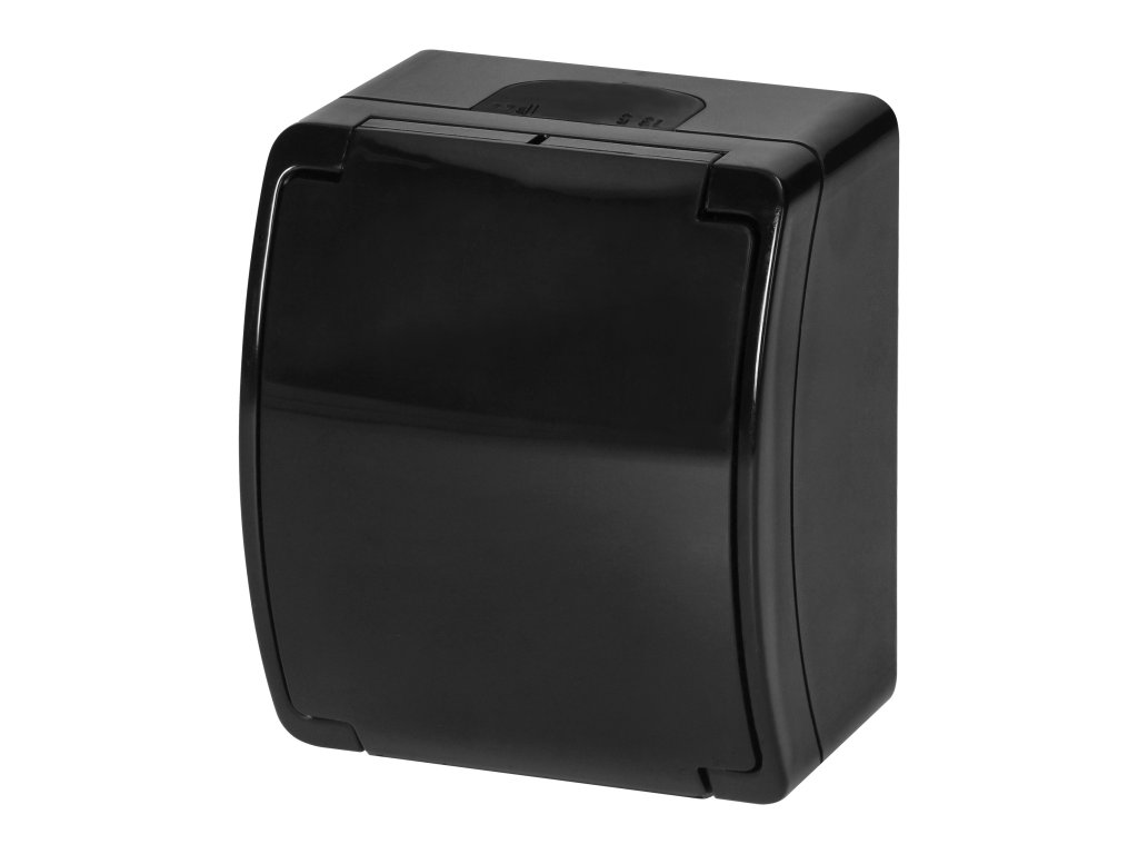 Vodeodolná čierna zásuvka IP44 vonkajšia