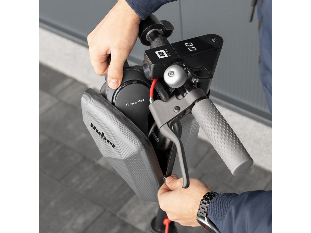 Taška na kolobežku zo série Rebel Toys sa vyznačuje veľmi veľkou kapacitou. S ľahkosťou si do nej uložíš nielen menšie doplnky ako kľúče či smartfón, ale aj fľašu vody, ba dokonca aj slúchadlá. Čo viac, brašňa má vnútri dve vrecká a karabínu, čo uľahčí organizáciu nosených vecí.