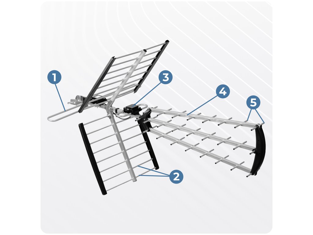 Anténa je vybavená inteligentným elektronickým systémom, ktorý optimalizuje príjem signálu, automaticky sa prispôsobuje podmienkam.