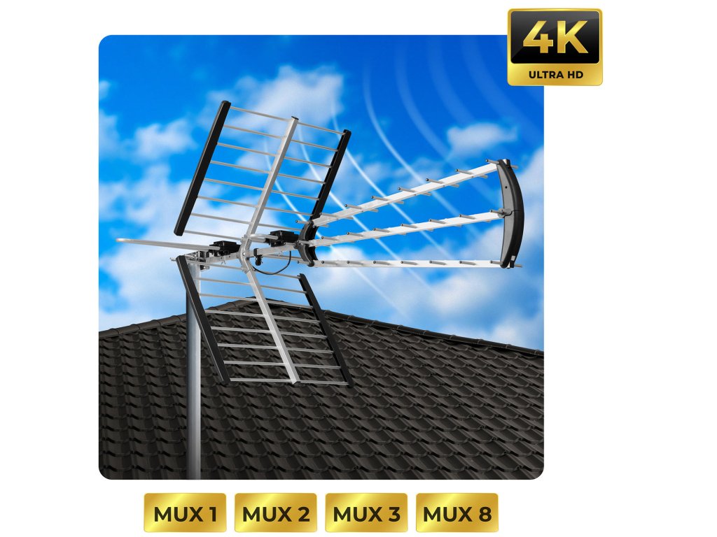 - Pasívna vonkajšia anténa na príjem pozemnej televízie v kvalite 4K.